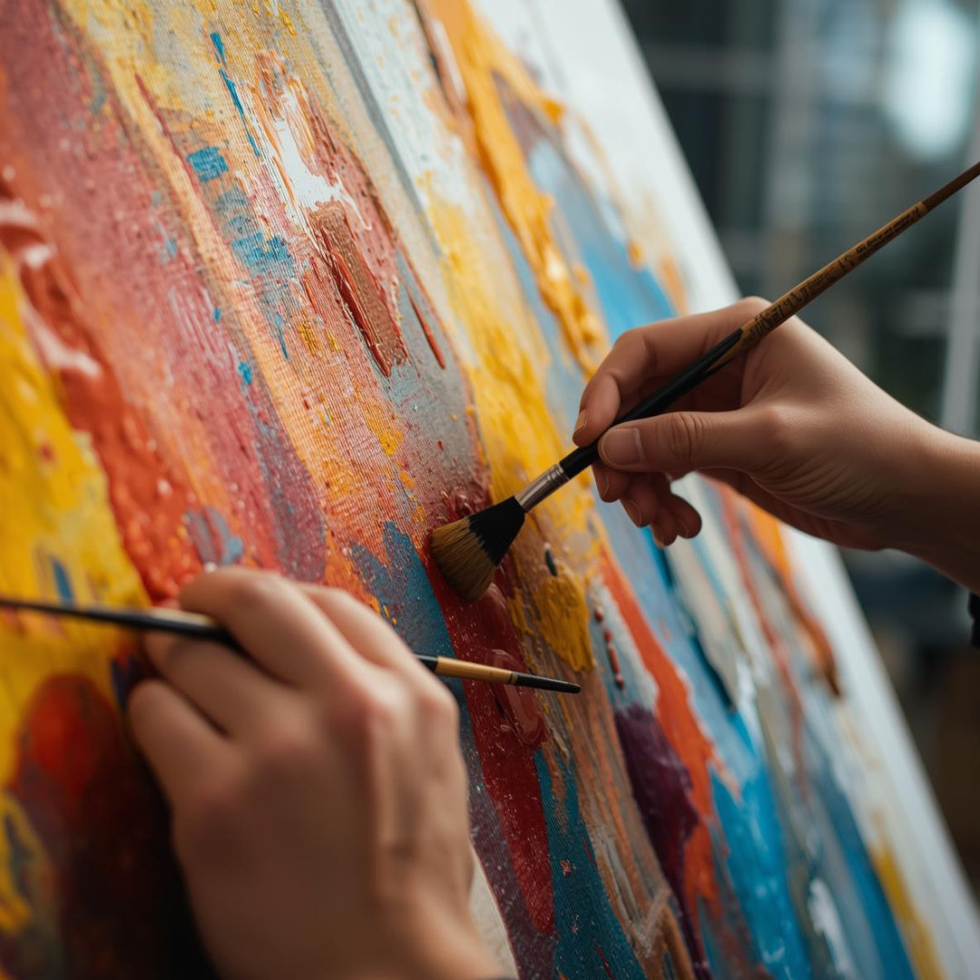 Ihr dürft gemeinsam entdecken, wie Farben fließen, sich mischen und neue Formen entstehen. Ganz ohne Druck und Vorgaben – hier zählt das Erlebnis des gemeinsamen Schaffens. Ob mit Pinseln, Schwämmen oder den eigenen Händen – alles ist erlaubt!